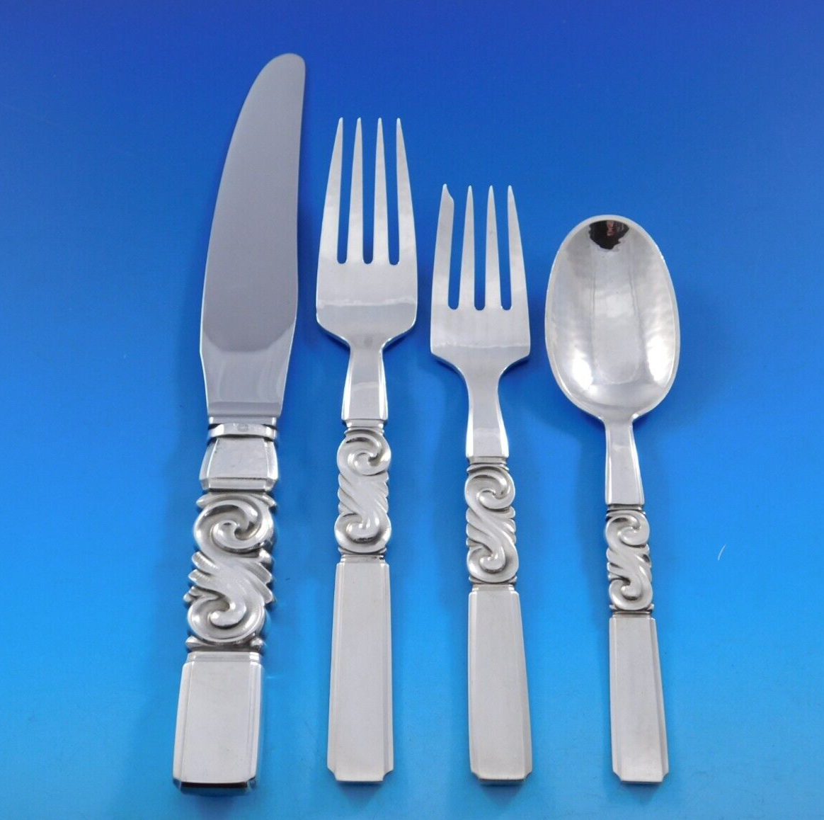 - Scroll by Georg Jensen Sterling Silver Flatware Set 12 Service 106 pcs Dinner
