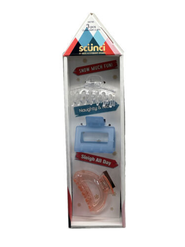 Add a pop of color to your hair with these Scunci 3 Pc Claw Clips Hair Accessory. The set includes pink, blue, and clear clips, each adorned with the playful phrase "Sleigh All Day". These plastic hair clips are perfect for any occasion, whether it's a casual day out or a special event. They work with all hair types and are easy to use. Get creative and personalize your style with this colorful and fun hair accessory set. ShipN24Hours. Inventory Location 7644