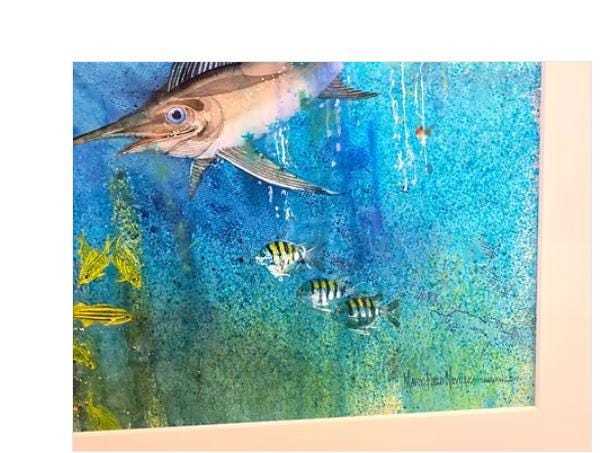Sea Creatures Painting Ink and Gouache Signed by Artist M. Neville (1932-2024) - Beautiful Aquatic Home or Office Decor in Excellent Condition, minor wear on frame, See Photos - Measures 40 1/2 " W x 33" H ... INCLUDES FREE SHIPPING ... Original 100% hand painted, artist signed painting. Note market on-average for fine art 6.5% annual return rate, projected to hit $115 billion by 2032.