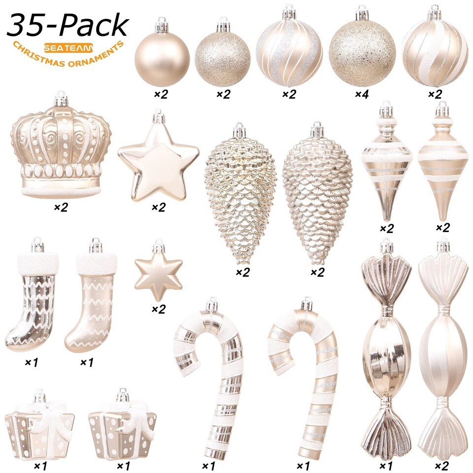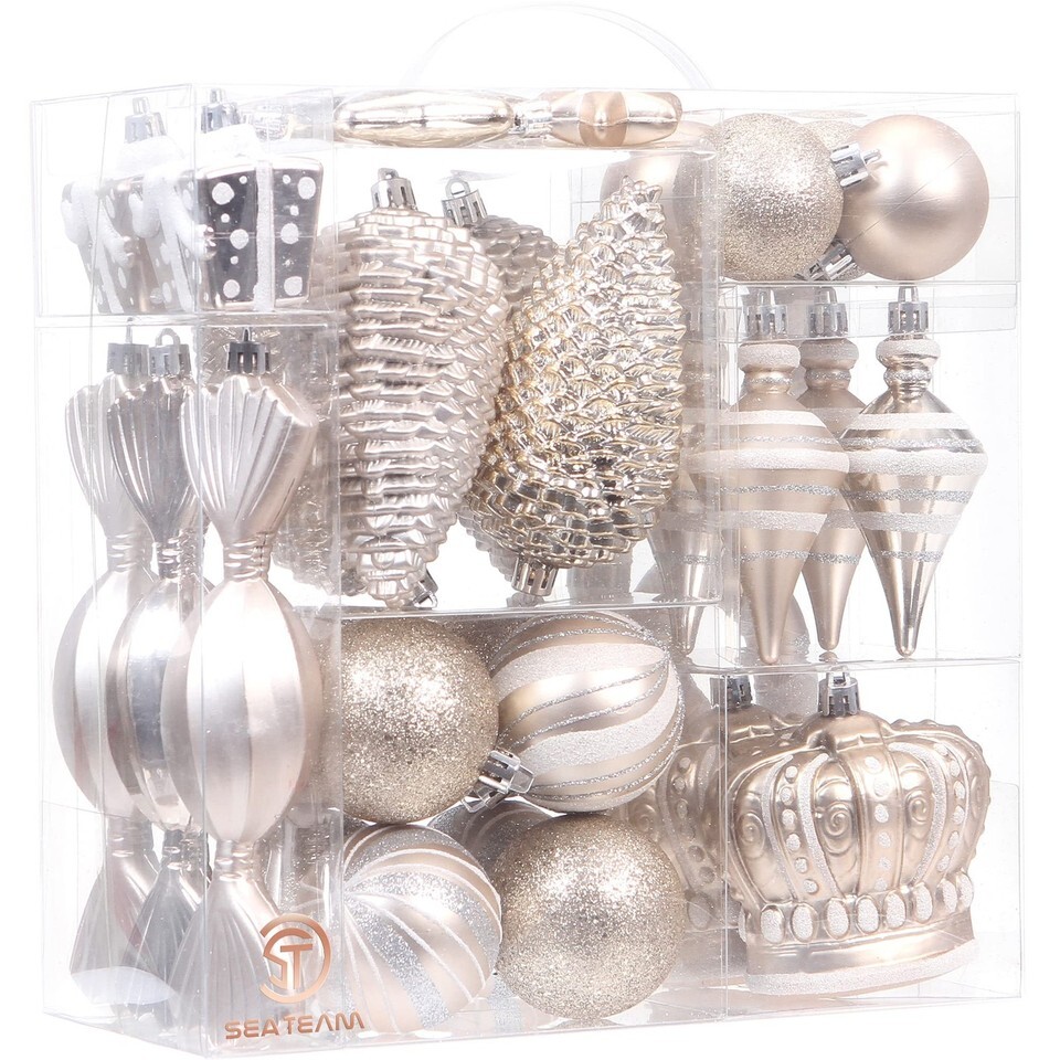 - Sea Team 50-Pack Assorted Shatterproof Christmas Ball Ornaments Set Champagne