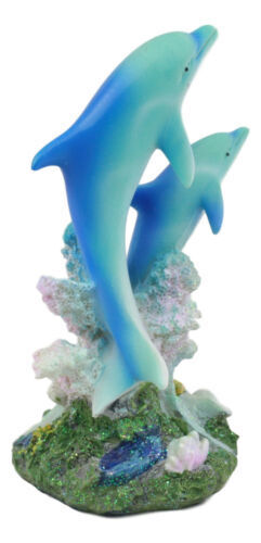 - Sea World Nautical Two Bottlenose Dolphins Swimming By Coral Reefs Statue 5.5"H