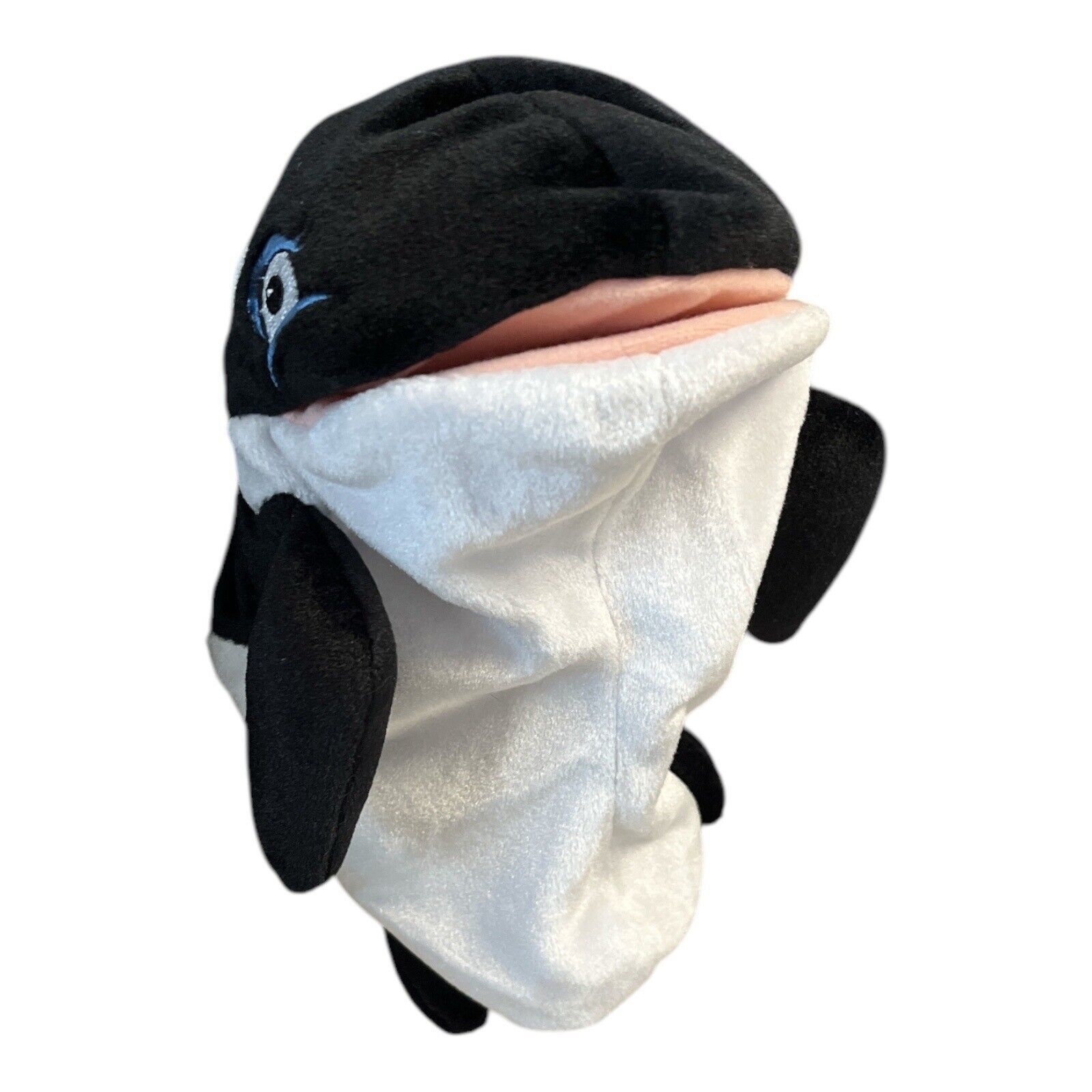 - Details: This unique SeaWorld Shamu puppet offers both entertainment and practicality, as it can also be used as a golf club cover. Featuring Shamu's iconic black and white design with a friendly blue eye, the puppet brings a playful touch to imaginative play or your golf gear. The mouth squeaks when squeezed, enhancing its interactive charm. The attached tag displays the official SeaWorld logo, making it a collectible item for marine life enthusiasts and Shamu fans.