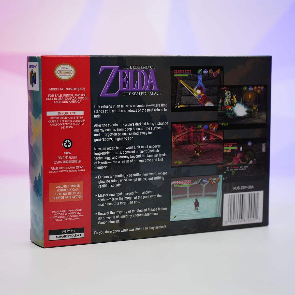 Sealed Palace is a completely reimagined 64-bit adventure, created in the spirit of a legendary classic. Built on the foundation of one of the most beloved N64 engines ever developed, it features entirely new dungeons, redesigned overworld areas, and an original storyline inspired by the rich legacy of The Legend of Zelda.