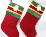 - Sears Christmas Stockings Velvet Red Green Gold 18" Lot of 2 Xmas NEW