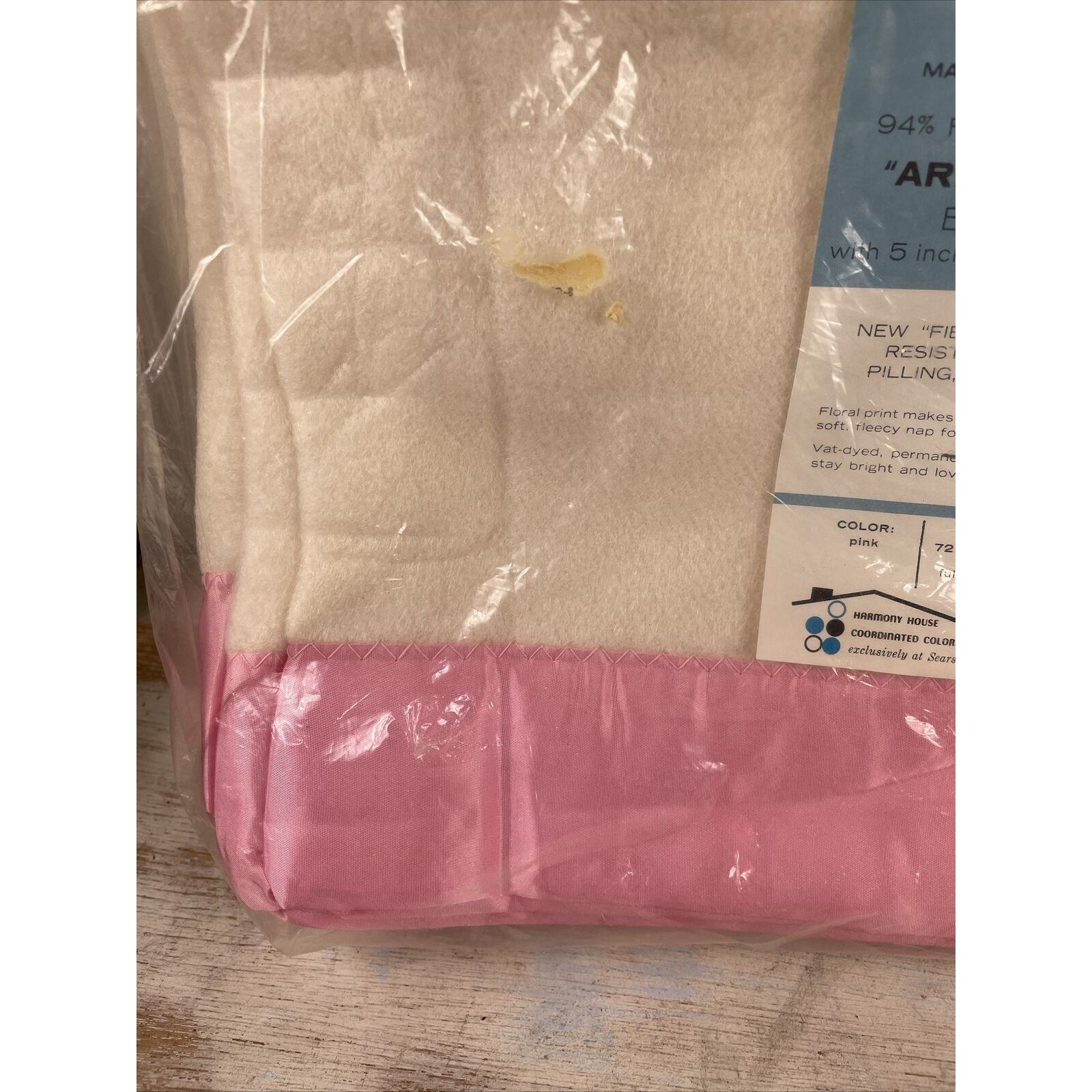 #1206 Sears Riviera Rose Pink Floral Acrylic Twin Blanket with Satin Trim ? NOS 1970s New in Package Still in original package. The package is dingy from age but the blanket is great. Always consider offers