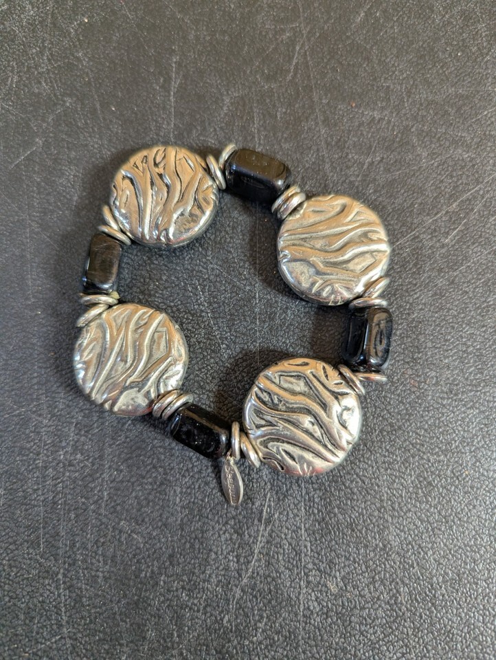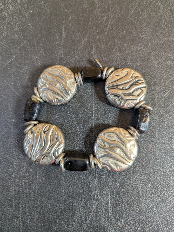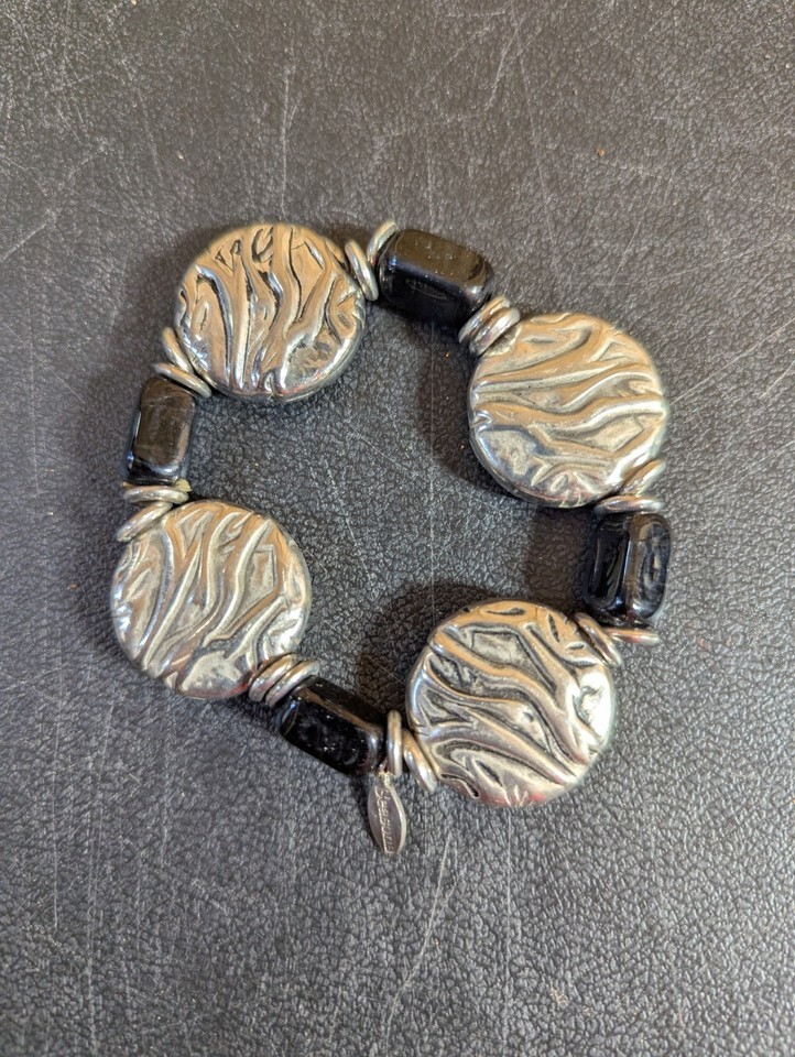 Season's Zebra Bracelet With Silver Toned Metal And Black Glass Beads