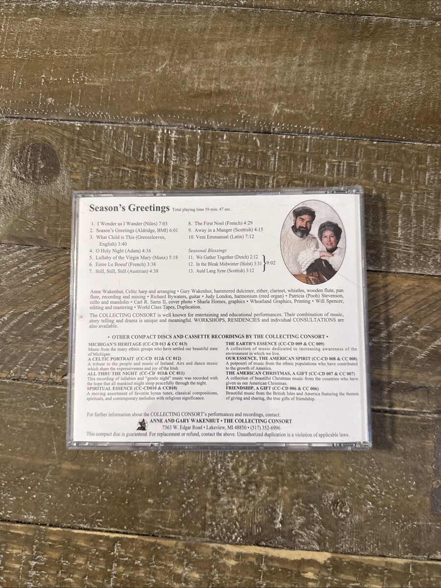 The Seasons Greetings The Collecting Consort CD is a festive music compilation featuring traditional Christmas songs performed by The Collecting Consort. Released by Collectables, this CD is perfect for the holiday season, with a collection of Christmas classics in a CD format. Enjoy the charm and nostalgia of Christmas music with this special holiday release from The Collecting Consort.