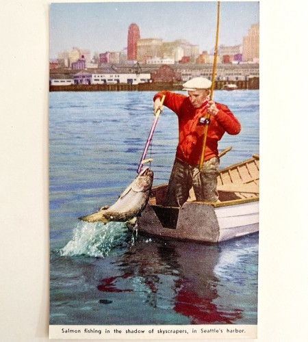 - Seattle Harbor Salmon Fishing Postcard c1960-70s Armed Forces Washington PCBG8B
