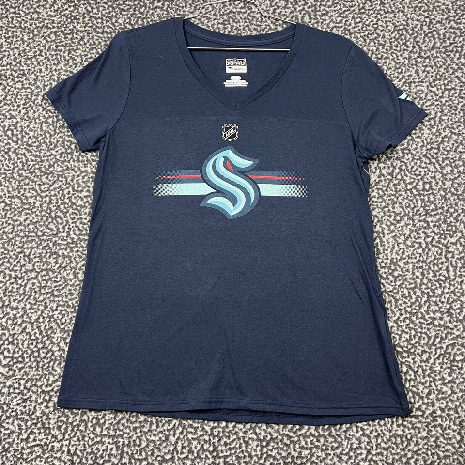 - Seattle Kraken Shirt Women Medium Blue Fanatics NHL Short Sleeve V-Neck M