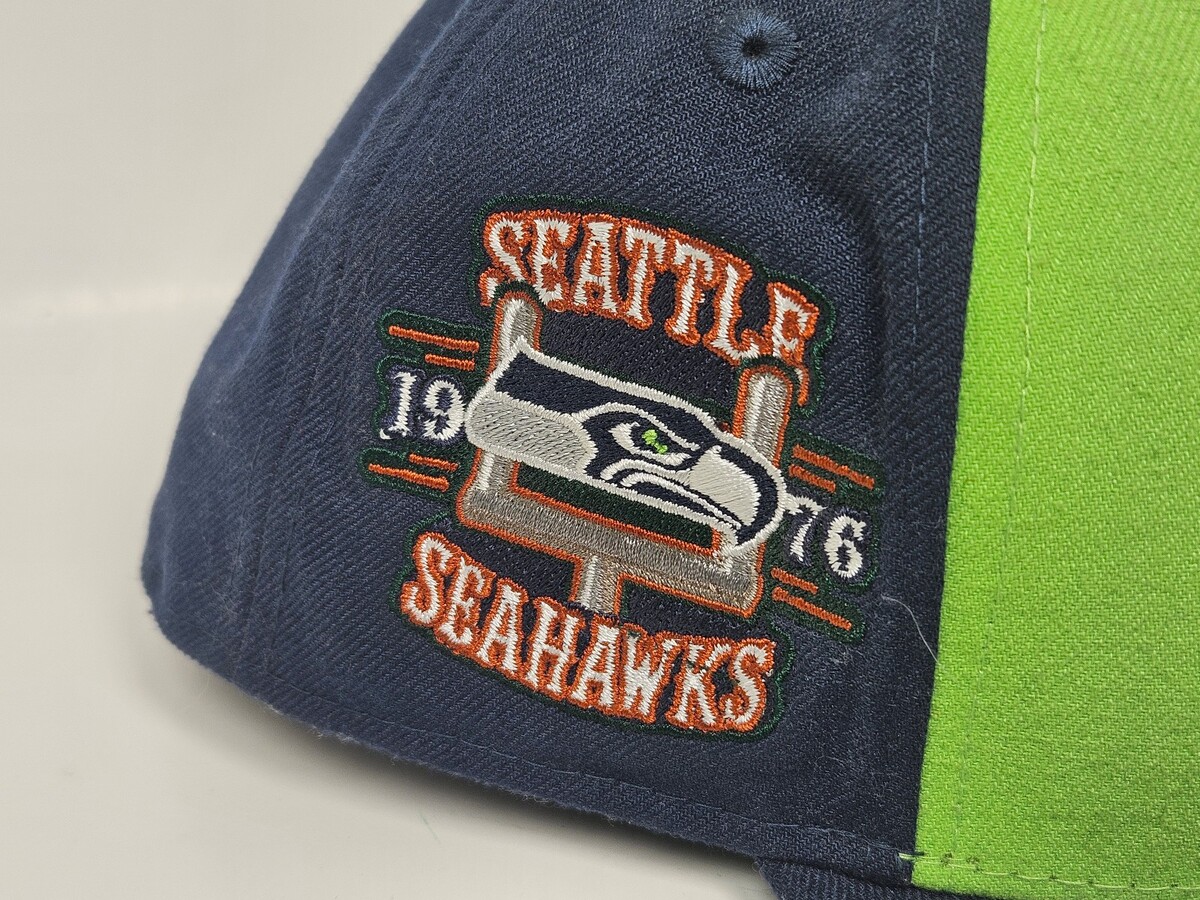 - Seattle Seahawks 1976 Patch Fitted Size 7 5/8 New Era Green Navy Blue Hat Cap