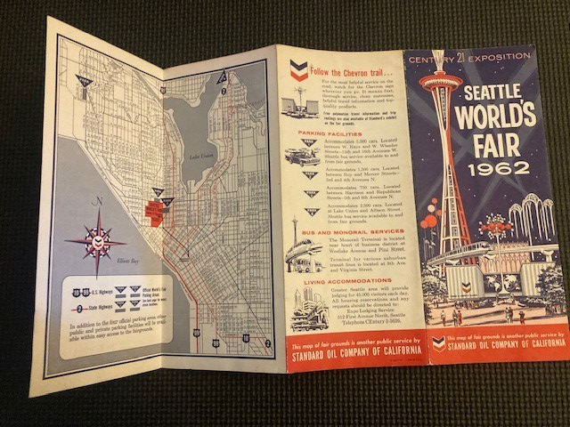 - Seattle World's Fair 1962 Chevron Standard Oil Map of Fairgrounds Petroliana
