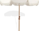 - Seazul 6.5ft Patio Umbrella with Fringe, Beach Umbrella Elegant Cream