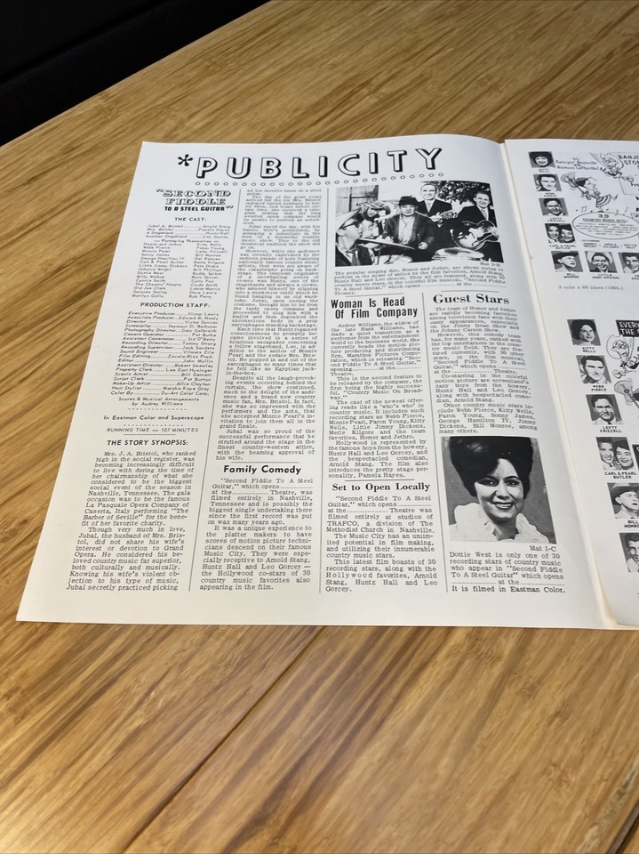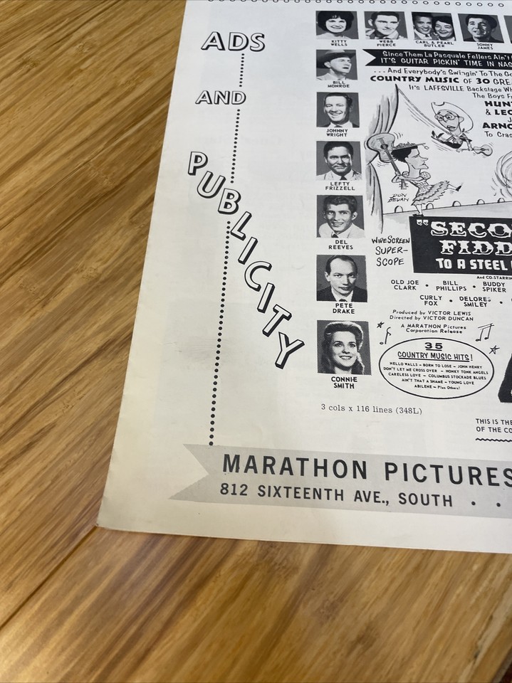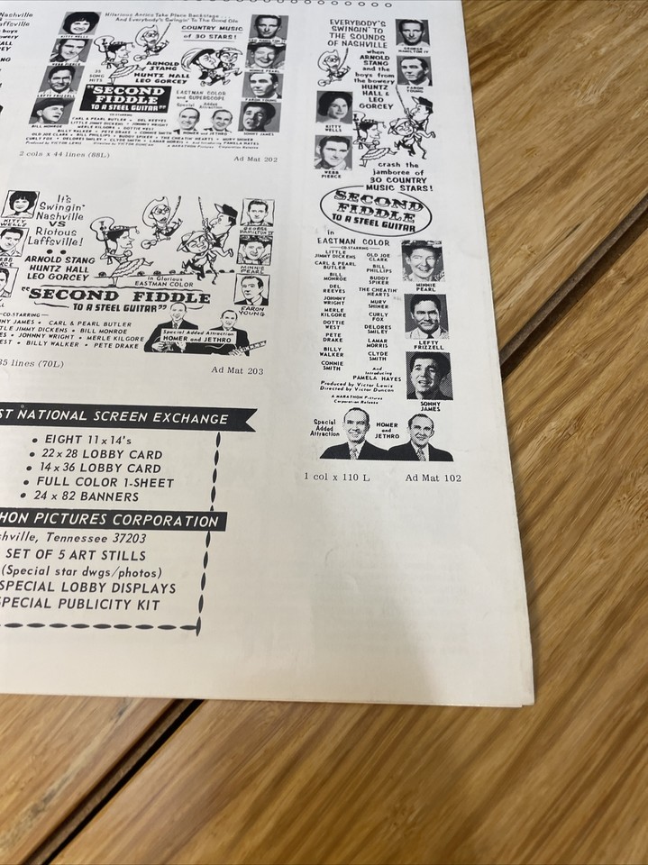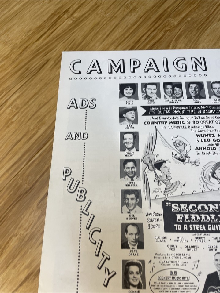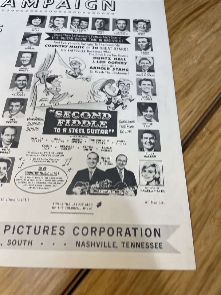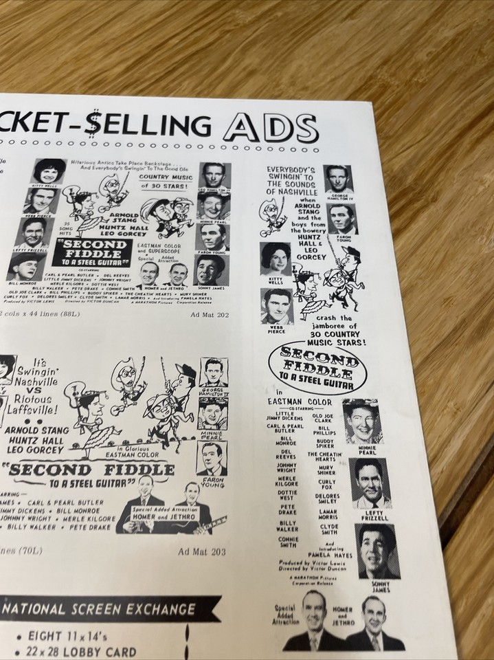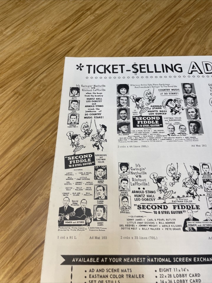- Second Fiddle to a Steel Guitar Press Book Kit Movie Poster 1965 KG Bill Monroe