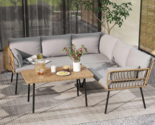- Sectional Sofa Set, All-Weather Wicker L-Shaped 5-Seater Patio Furniture with Re