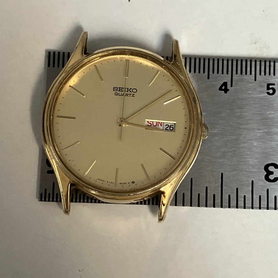 - Seiko Day & Date Gold Tone Quartz Watch 5Y23-8030 New Battery Needs Watch Band