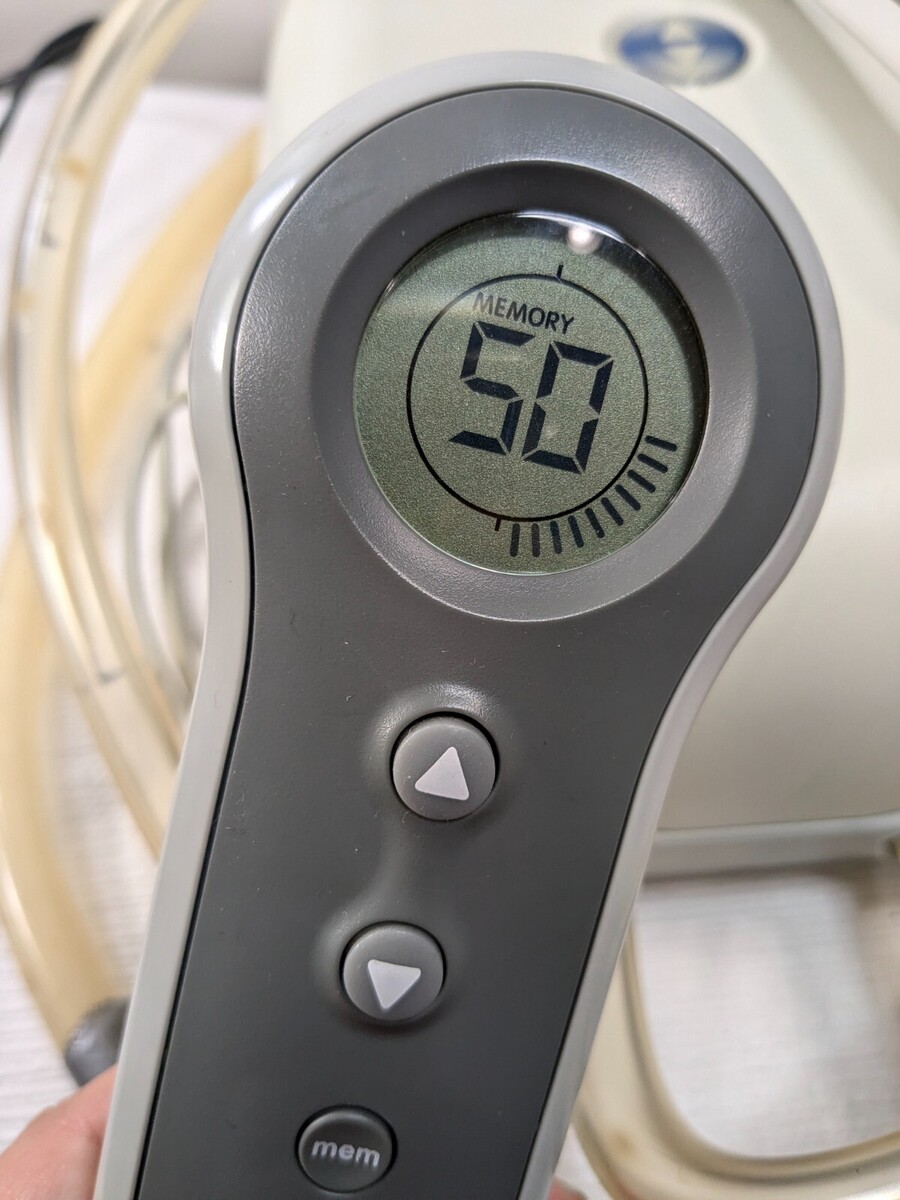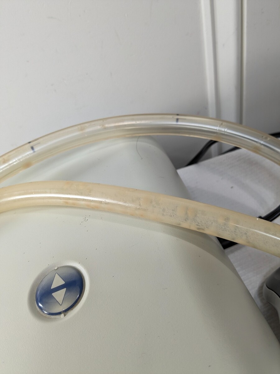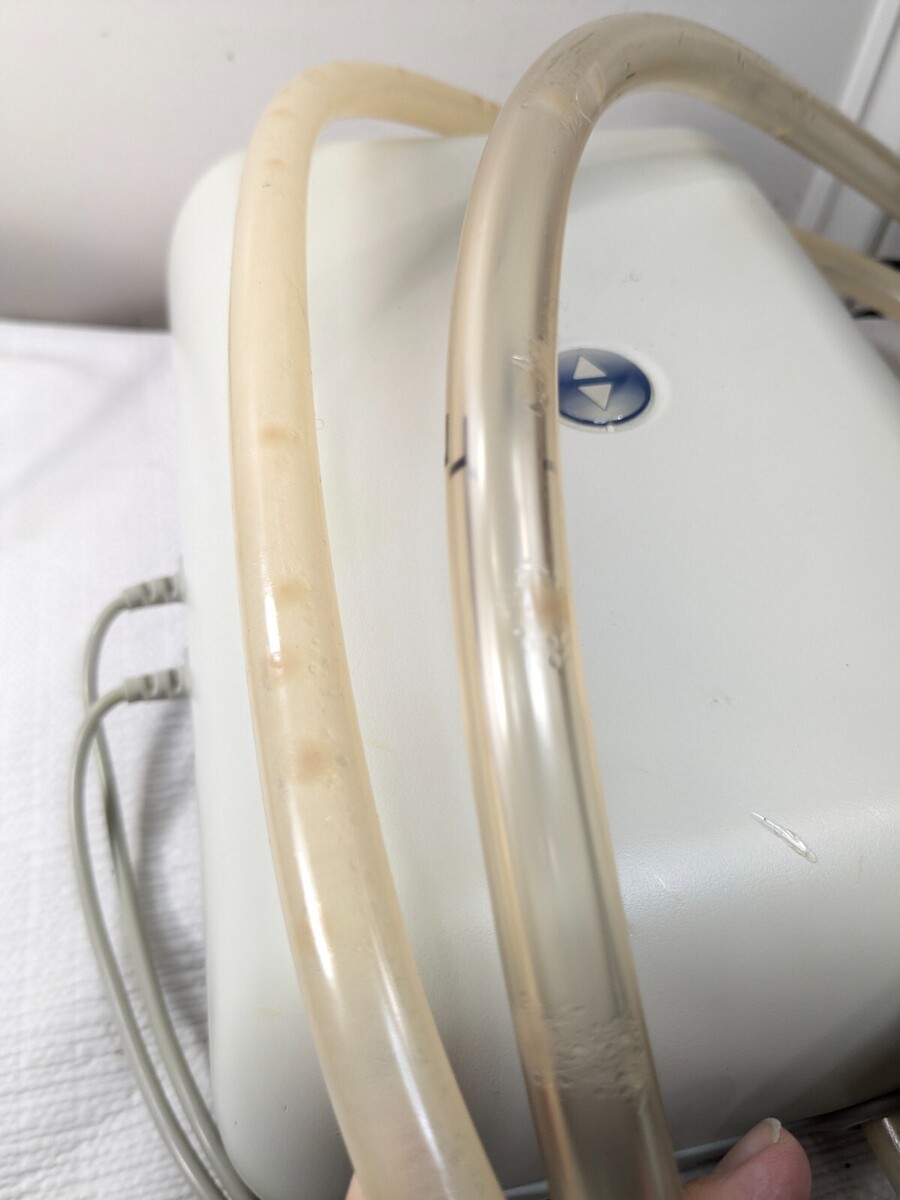 SELLING AS IS/FOR PARTS REPAIR. Only has 2 hoses(missing 2) Heavy condensation inside the tubing as shown. Both sides of the pump work. One remote displays the number correctly, however the other does not. Please see pics for details. Includes power cord. Missing some of the rubber grips from the bottom.