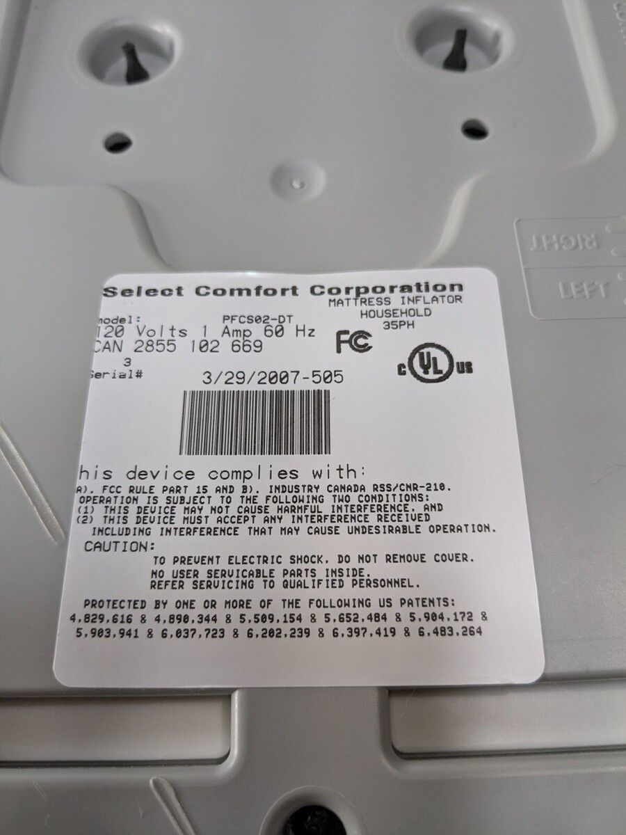 Select Comfort Sleep Number Air Bed Pump For Queen King Mattress Model PFCS02-DT