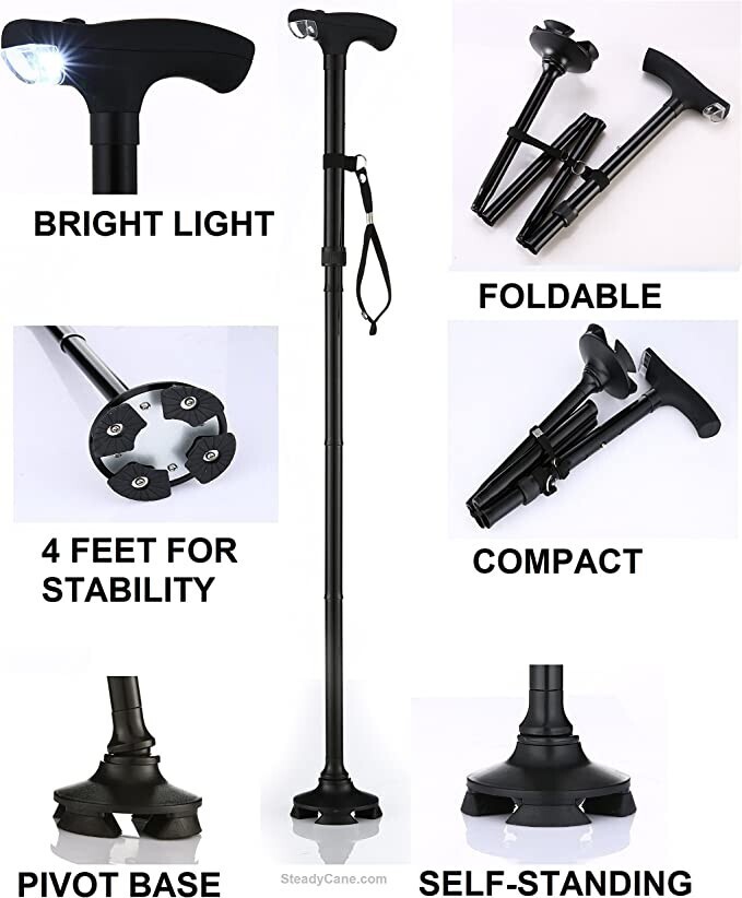 SteadyCane.com Self Standing - Foldable - Height Adjustable - Bright LED Light - Wrist Strap Home Mobility Why is ... Ver ítem »