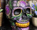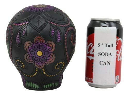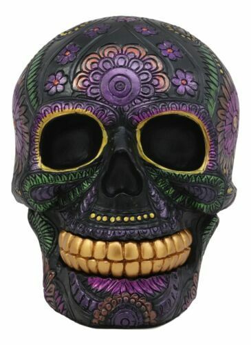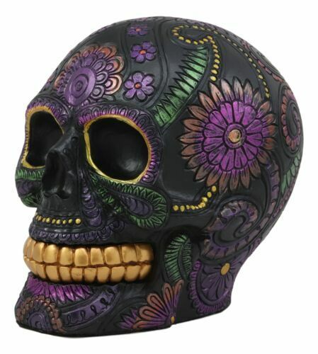 - Semi Metallic Black Day of The Dead Floral Sugar Skull Figurine DOD Skulls Decor