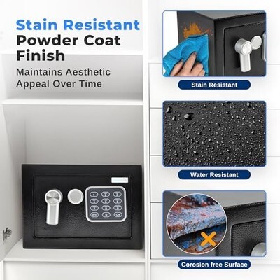 * Compact Versatile ? At 9.1" x 6.7" x 6.7", this safe is ideal for storing cash, jewelry, firearms, important documents, and more.