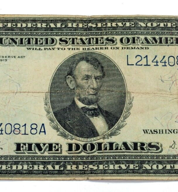 - Serie Del 1914 $5 Federal Reserve Note In Buone Condizioni Fr #890