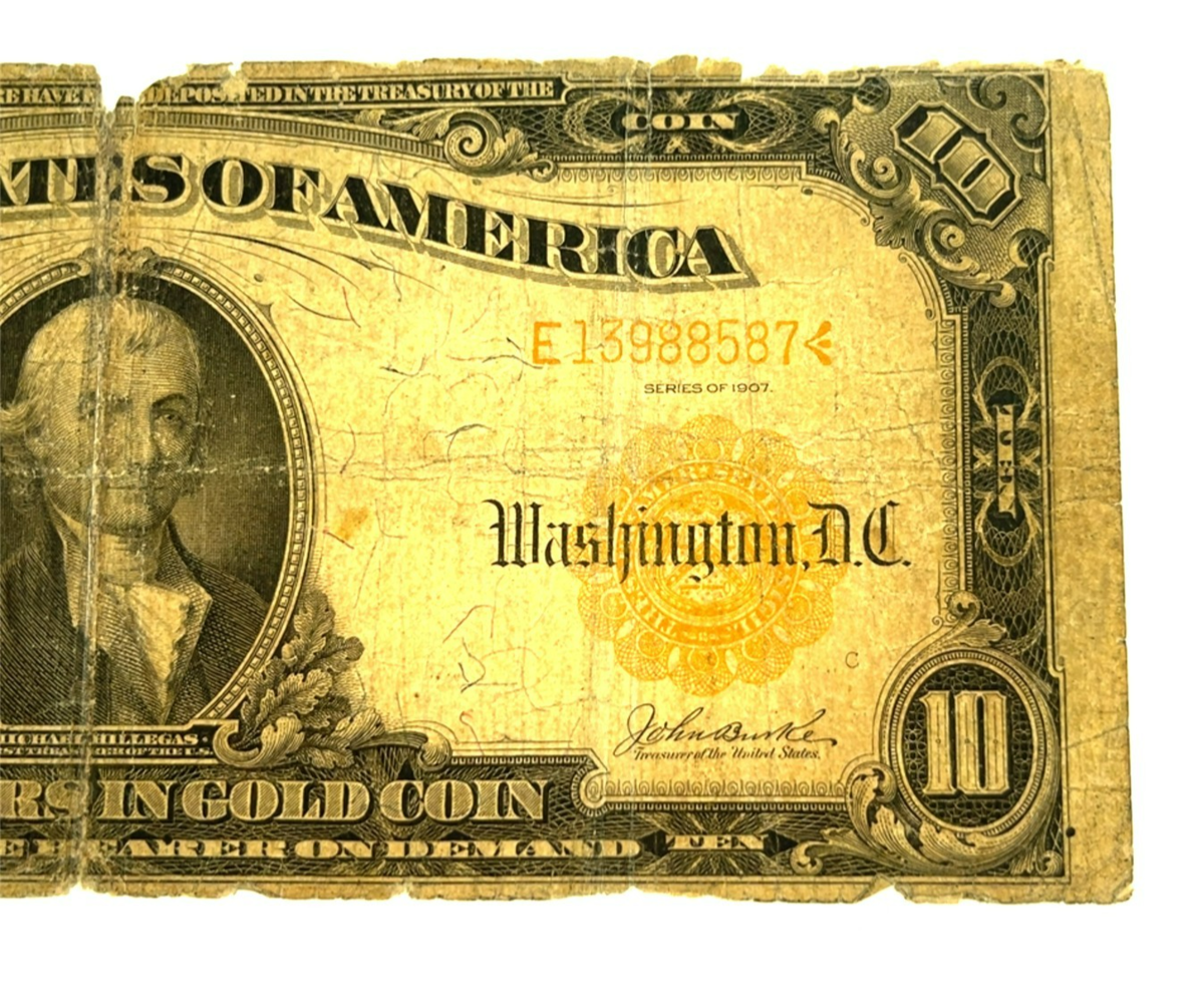 - Series of 1907 $10 U.S. Gold Certificate Good+ Condition FR #1172
