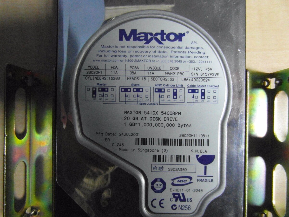 1 - Maxtor 541DX 2B020H1 20GB 5400RPM 3.5" IDE Desktop Hard Drive