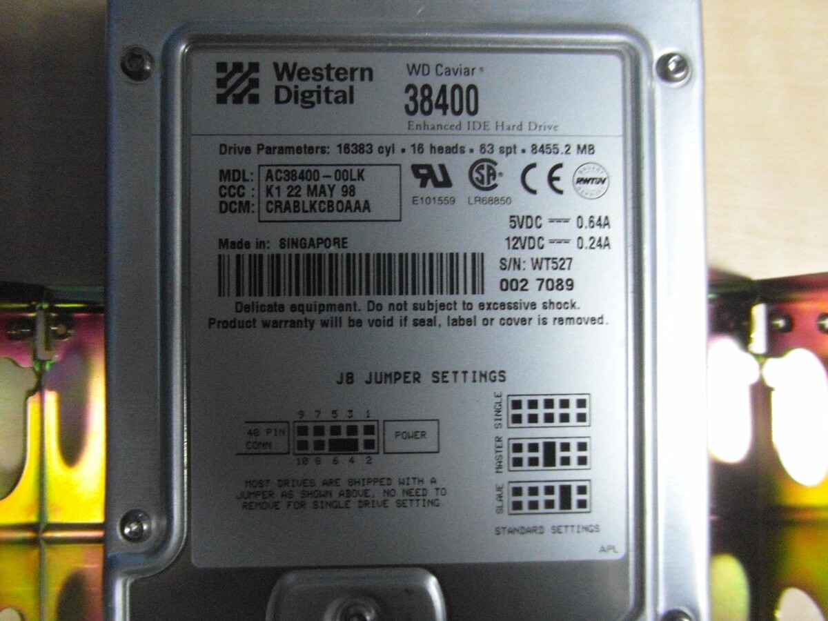 1 - Western Digital Caviar 38400 8.4GB ,5400 RPM,3.5" IDE Hard Drive 256K ATA-33