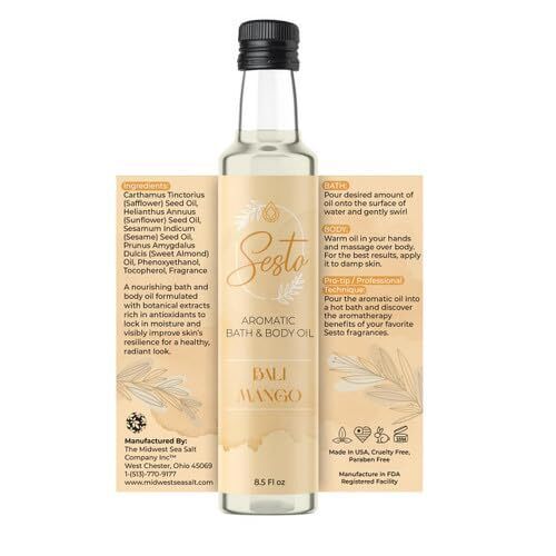 - Sesto Aromatic Bath & Massage Oil - Bali Mango - 8.5oz, with Label