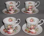 - Set (4) DUCHESS Bone China FRUIT PATTERN Cups and Saucers MADE IN ENGLAND