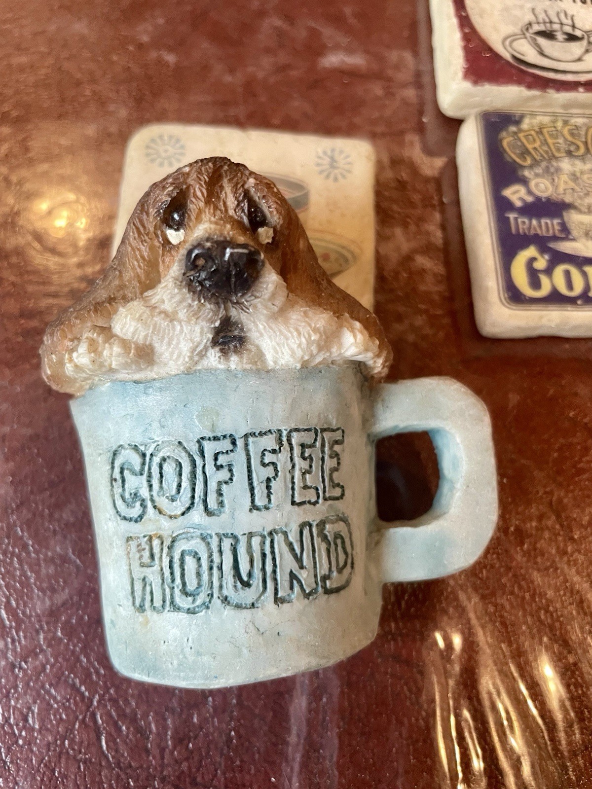 - Set 4 Vintage Stone Coffee Refrigerator Magnets Basset Hound