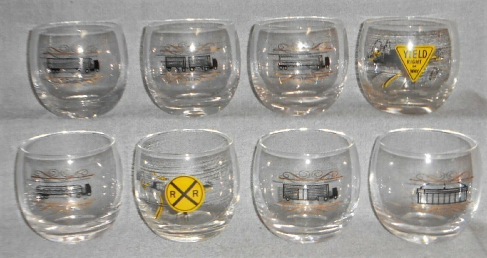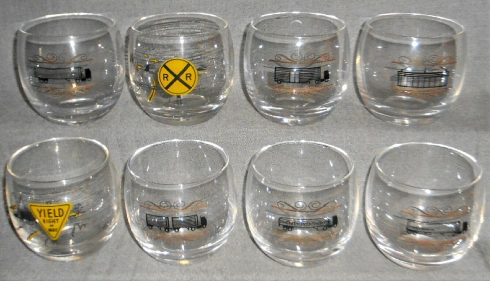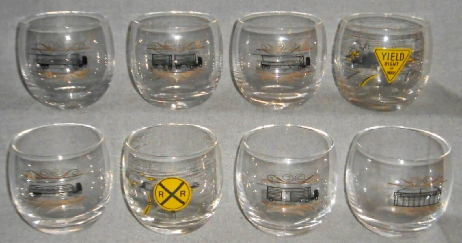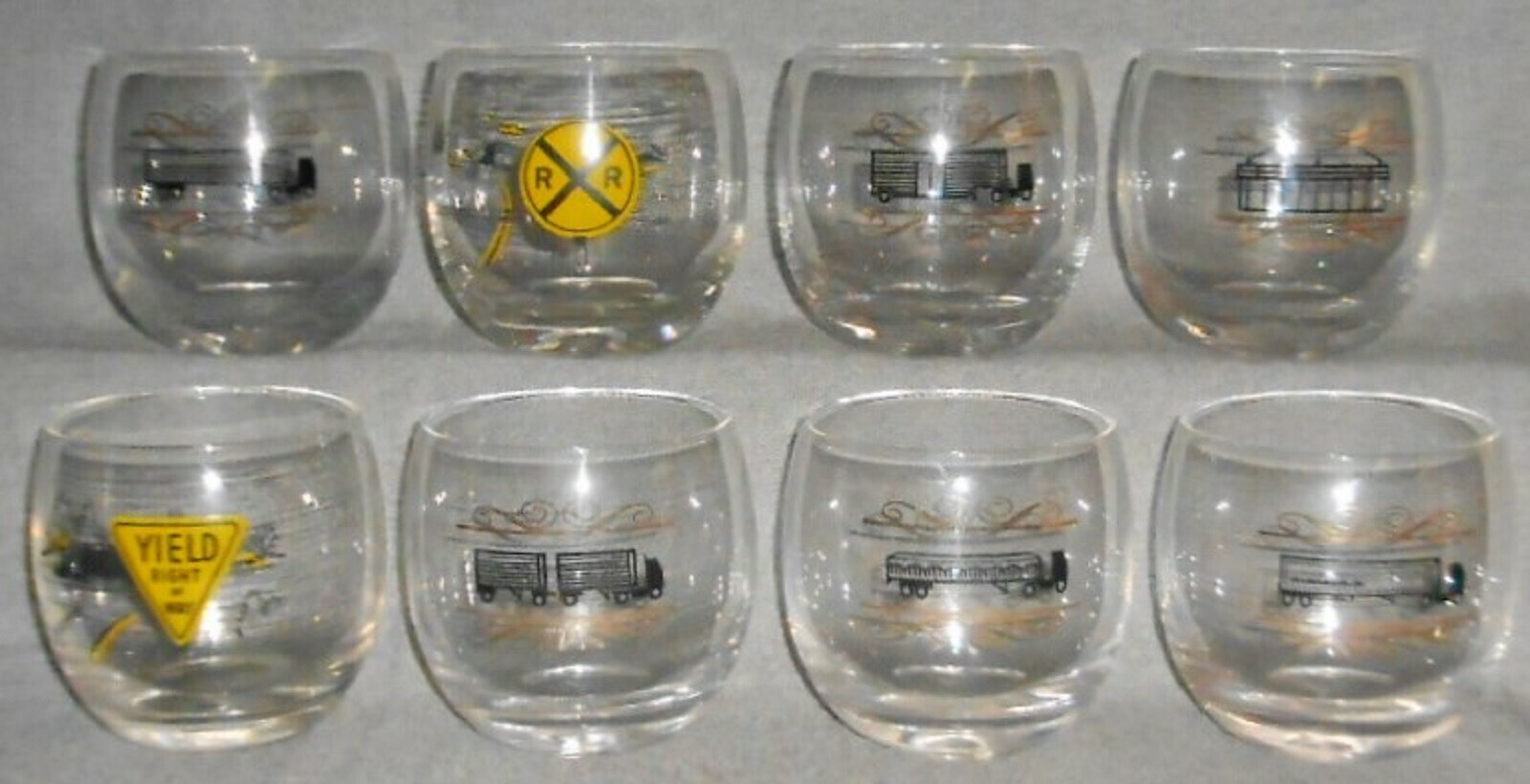 - Set (8) MCM 1950s-60s 10 oz MEDIUM ROLY POLY Bar Glasses TRUCKING - BIG RIG