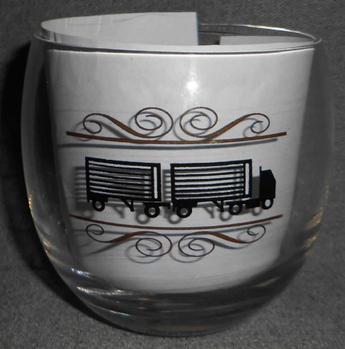 Set (8) MCM 1950s-60s 10 oz MEDIUM ROLY POLY Bar Glasses TRUCKING - BIG RIG