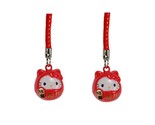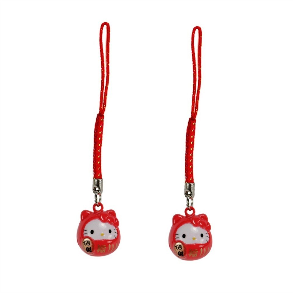 - SET OF 2 HELLO KITTY BRASS BELL CHARM Lucky Fortune Daruma Red Cell Phone Strap