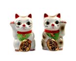 - SET OF 2 MANEKI NEKO SALT & PEPPER SHAKERS 3.5" Lucky Beckoning Fortune Cat NEW