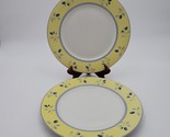Presenting a set of two exquisite Royal Doulton dinner plates in the Blueberry pattern. These plates are made of fine porcelain material, manufactured in the year 2005 and come in a 10.25-inch size. The set includes two dinner plates, each adorned with the beautiful blueberry pattern and a vibrant yellow color.