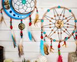 - Set Of 2 Southwestern Indian Boho Chic Moon Gray Wolf Feather Wall Dreamcatchers