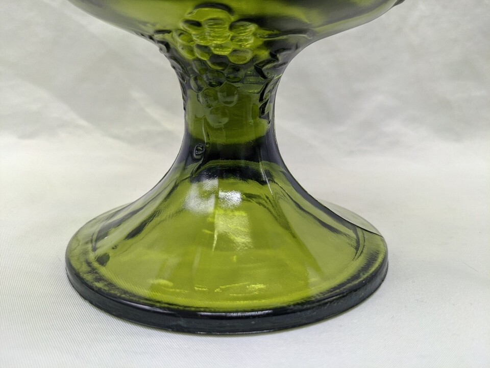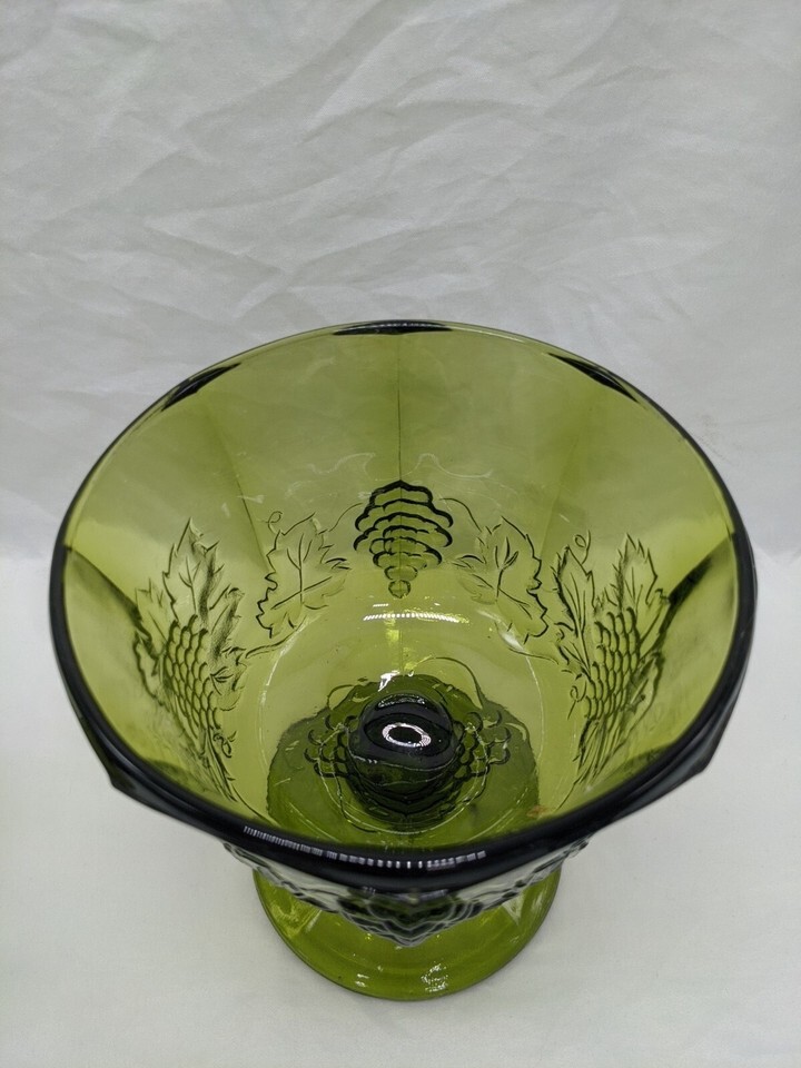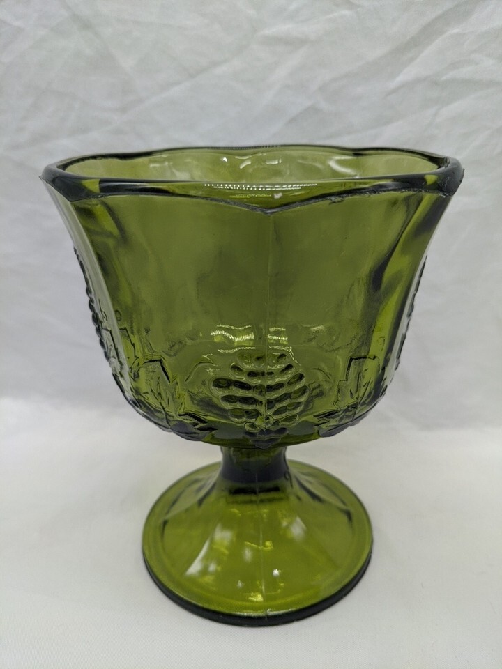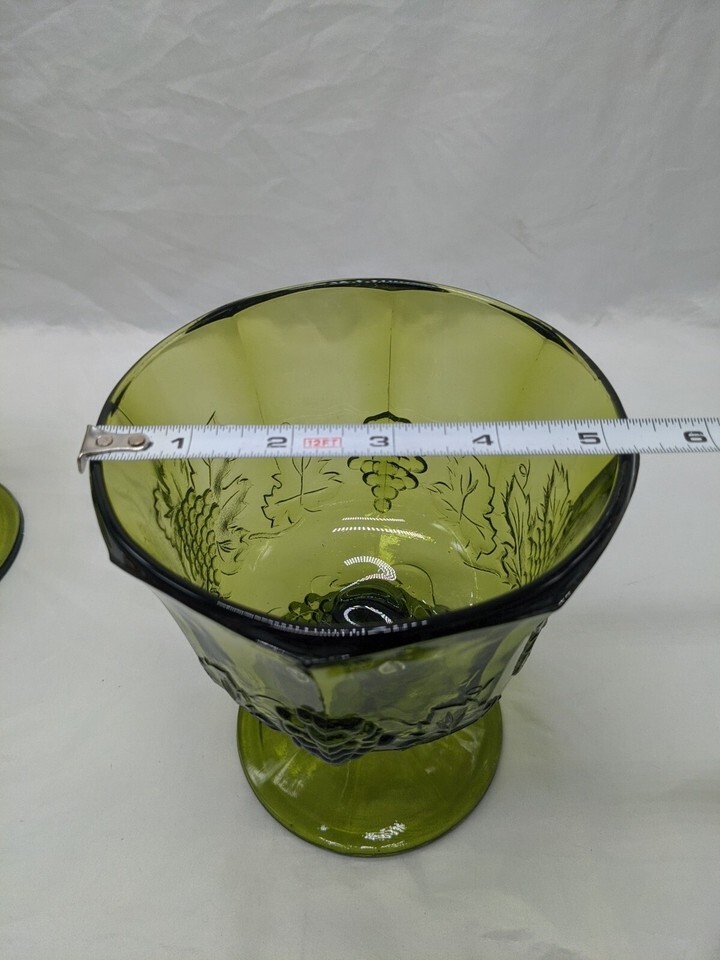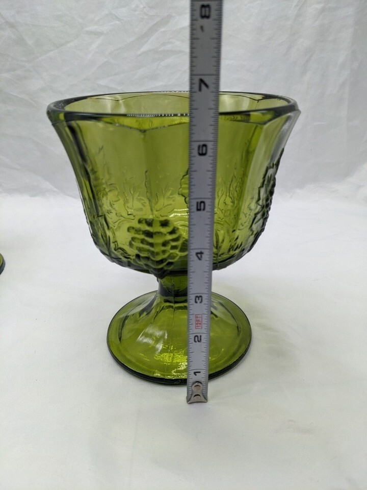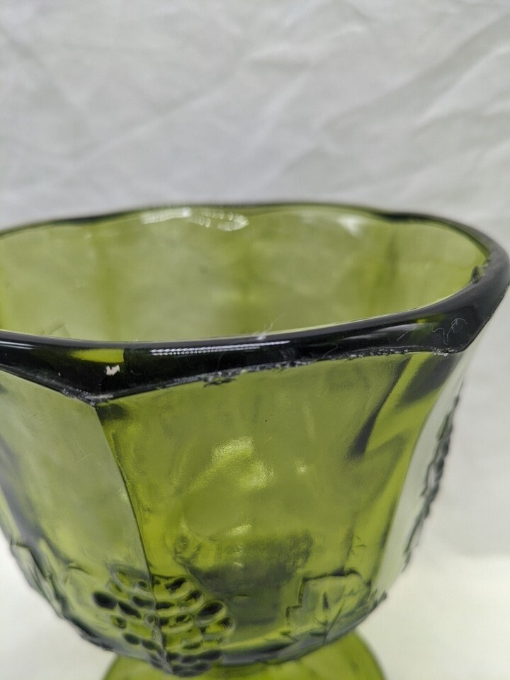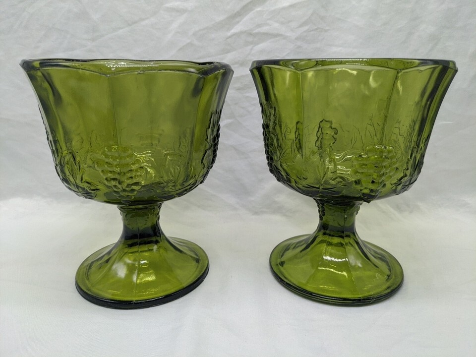 - Set Of (2) Vintage MCM Green Glass Bowl Cup Goblet Grape Design 5 1/4" X 6 1/2"