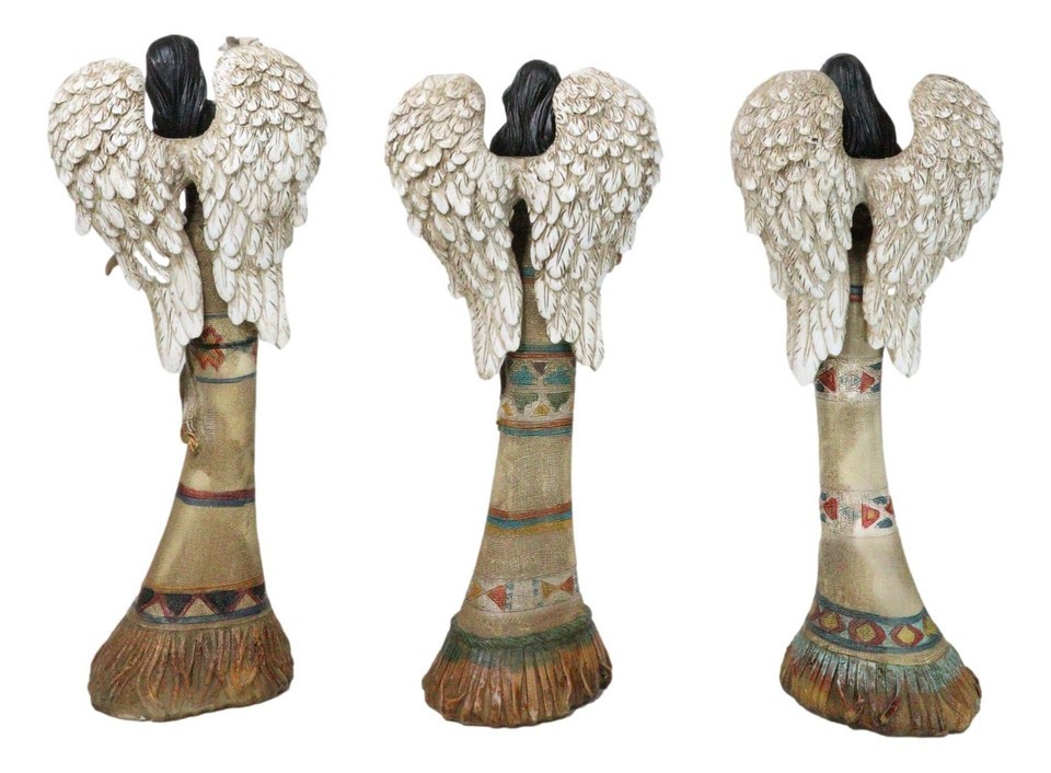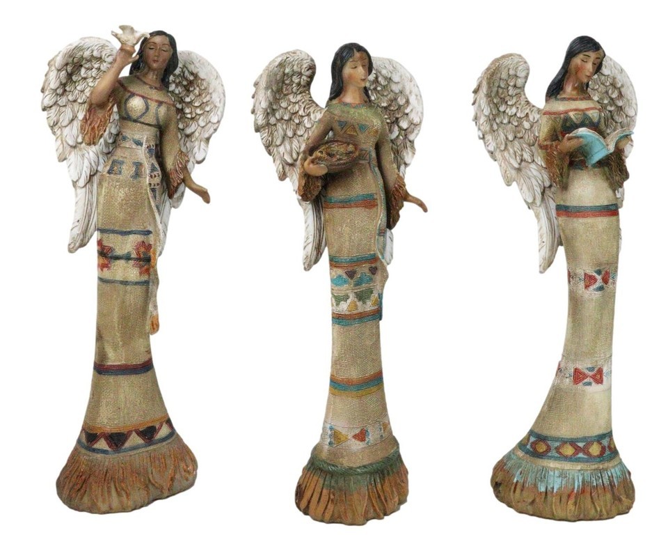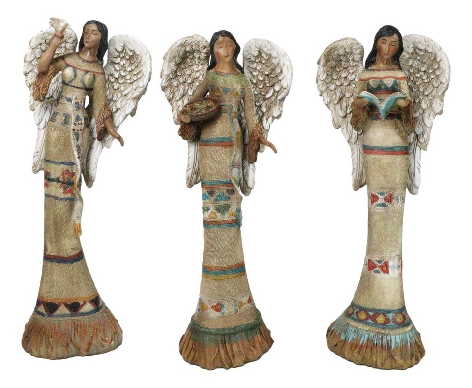 - Set Of 3 Native American Female Angels Holding Bible Dove And Basket Figurines