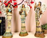 Set Of 3 Native American Female Angels Holding Bible Dove And Basket Figurines