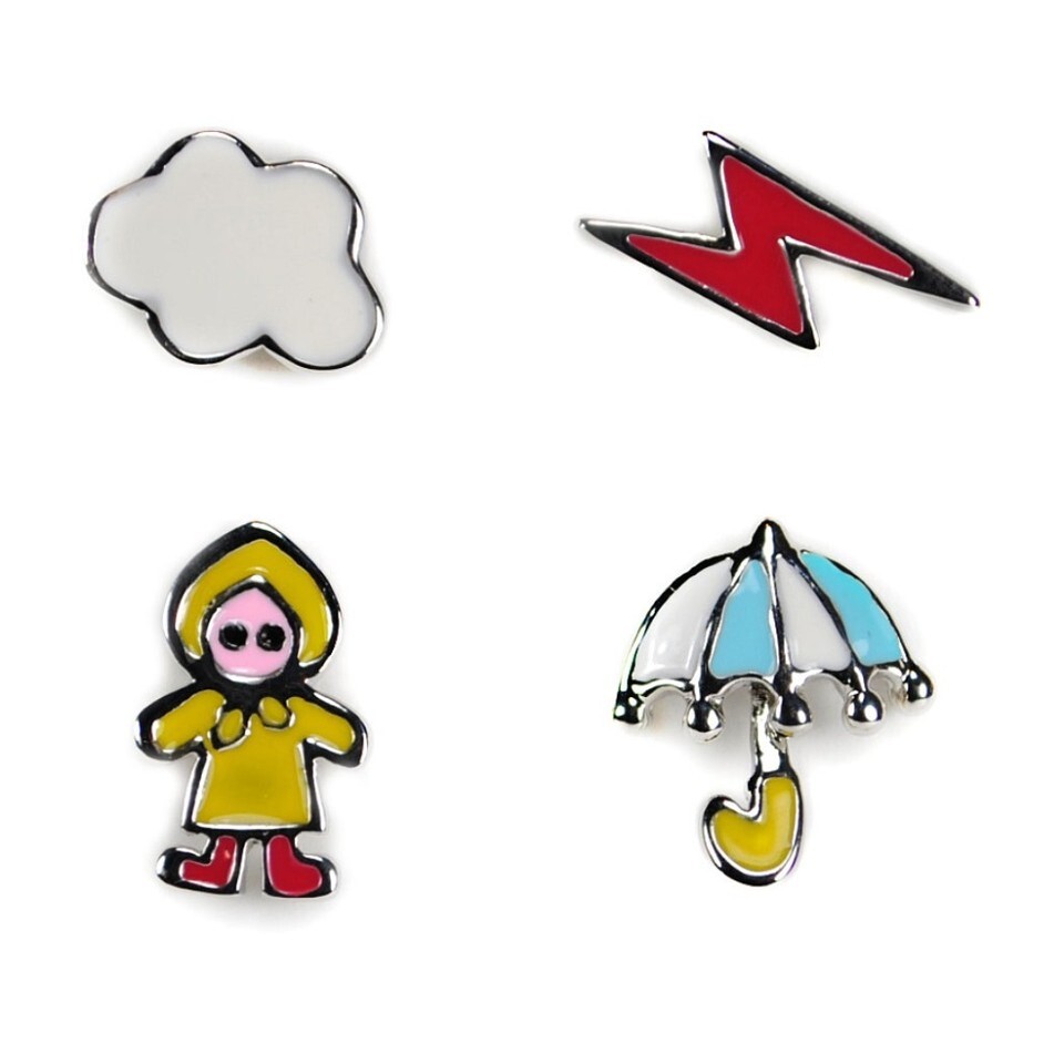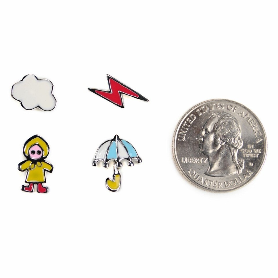 - SET of 4 CUTE RAINY DAY EARRINGS Post Stud Enamel NEW Weather Rain Gift Jewelry