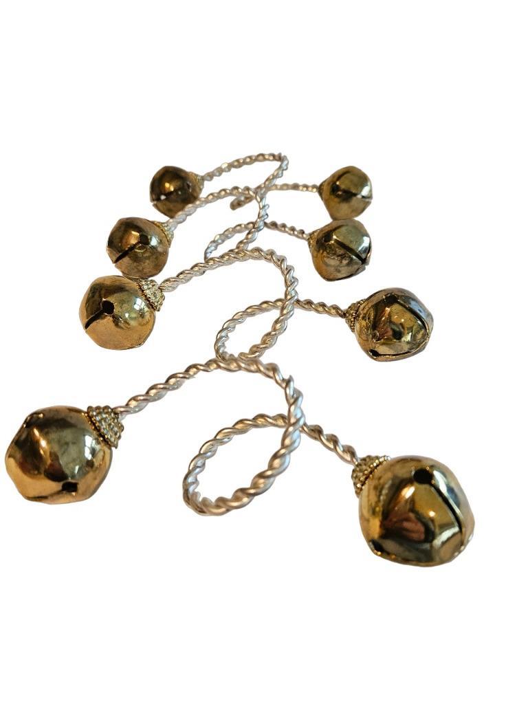 The 4 rings are silver tone metal in a nice braided design with each end adorned with a brass jingle bell!