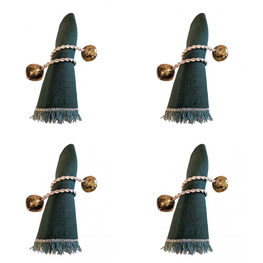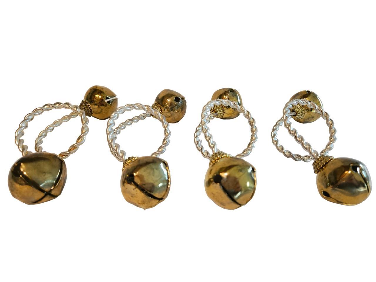 Set of 4 SILVER GOLD JINGLE BELLS NAPKIN RINGS