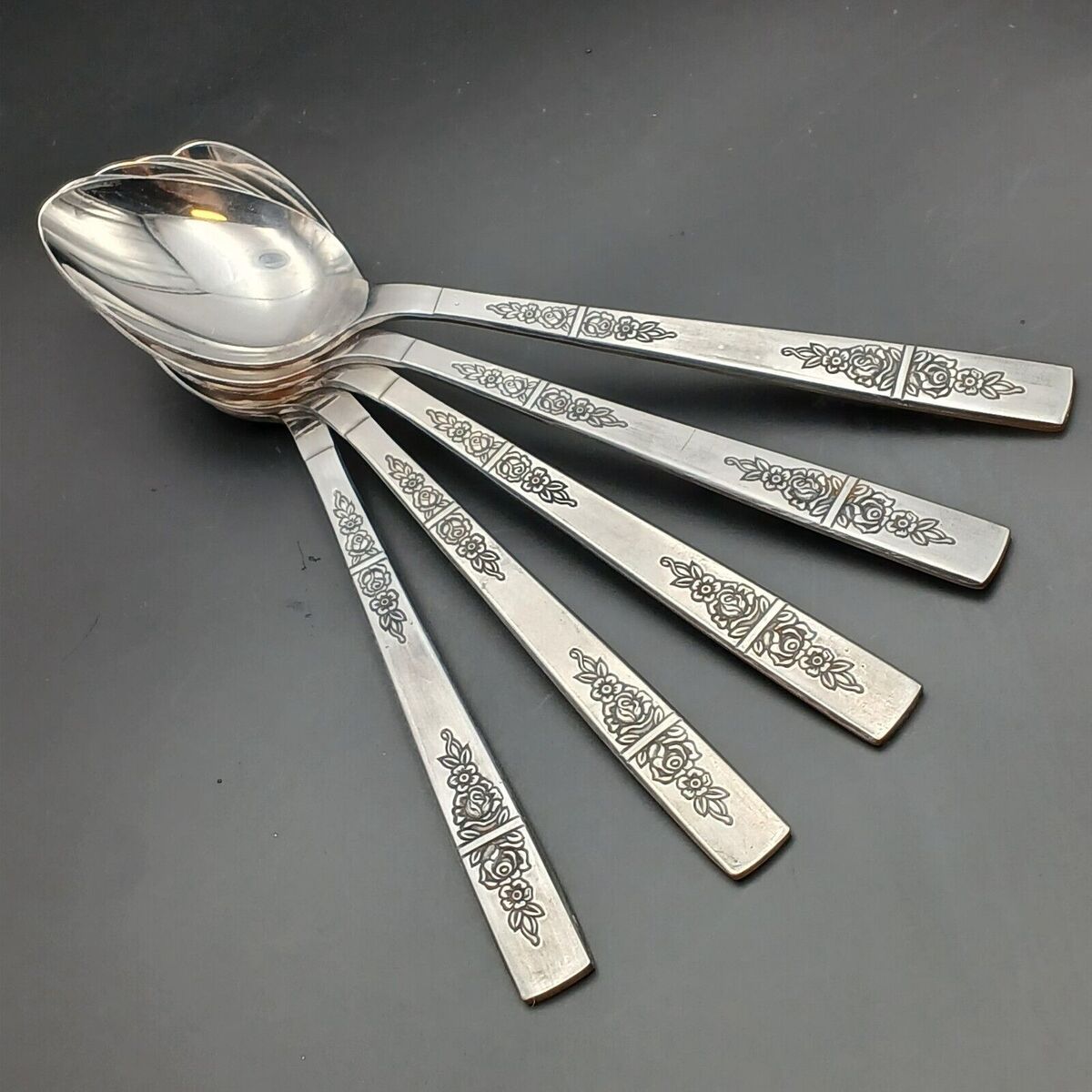- Set of 5 IIC IMPERIAL International Rose Image Tablespoon Soup Spoon JAPAN