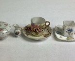 - Set Of 6 Floral Ceramic/Porcelain Lidded Trinket Dish, Creamer, Cups/Saucers