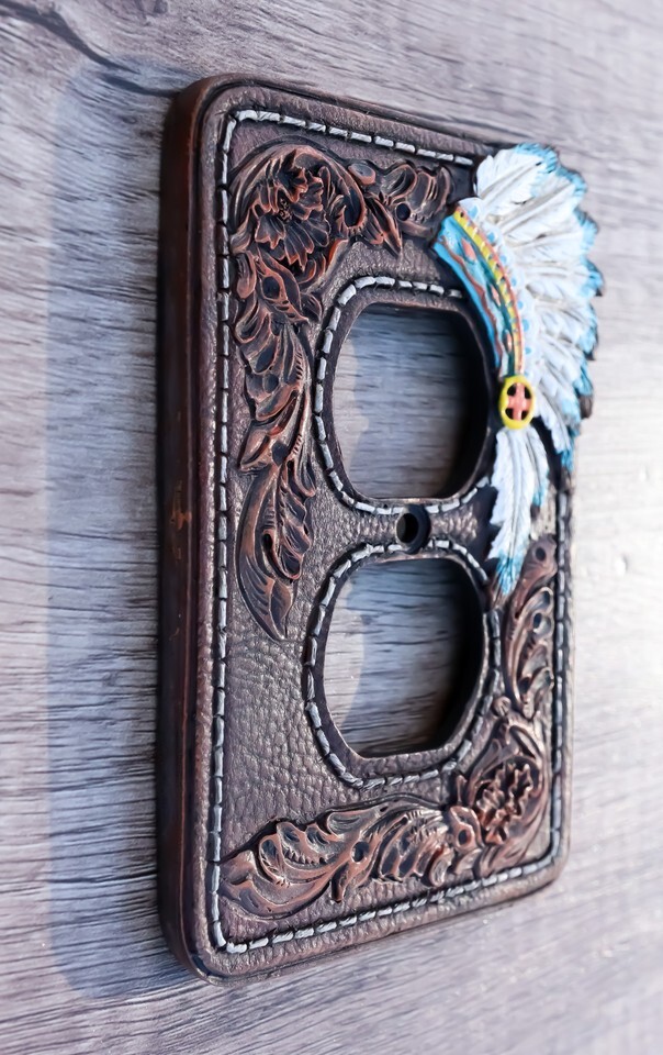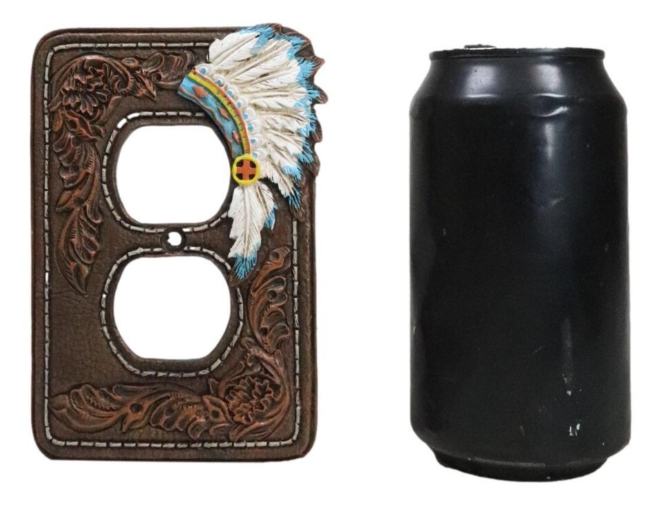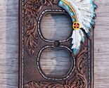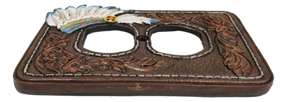 - Set of 2 Faux Leather Indian Chief Headdress Double Receptacle Outlet Plates