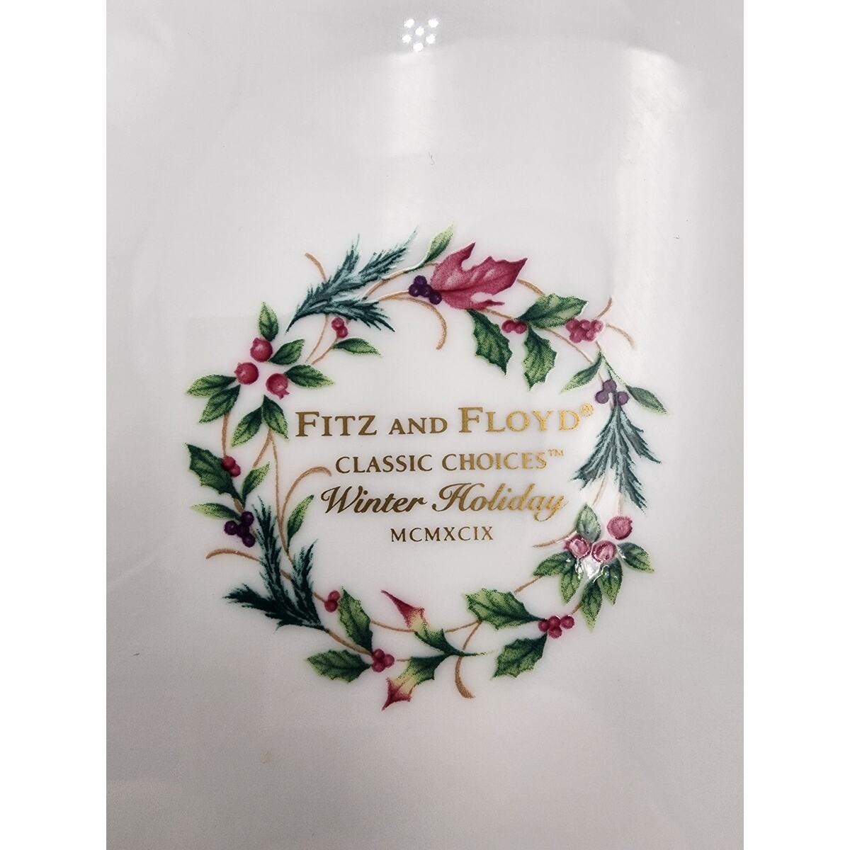 Add a touch of holiday cheer to your table with this set of 2 Fitz and Floyd 12 inch serving plates. Featuring a beautiful wreath design, these plates are perfect for your Christmas and winter meals. Made by a renowned brand, these plates are of high quality and will last for years to come.