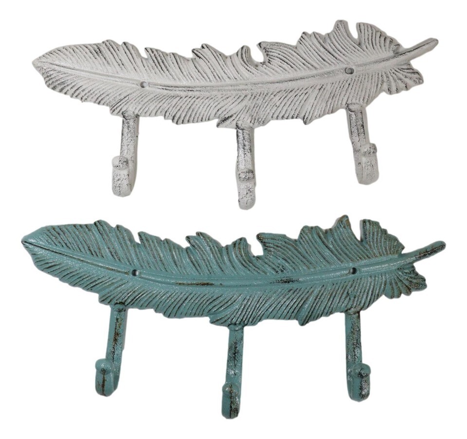 ? These Tribal Native American Indian Feathers Triple Wall Hooks are made of cast iron, hand painted and polished individually.