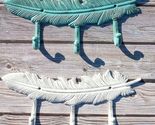 - Set of 2 Green White Native Indian Dreamcatcher Feathers 3-Pegs Triple Wall Hook