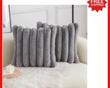 - Set of 2 Grey Faux Fur 18x18 Decorative Pillow Covers - Luxurious Velvet Back